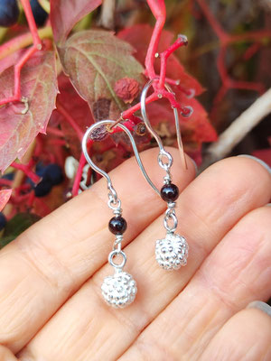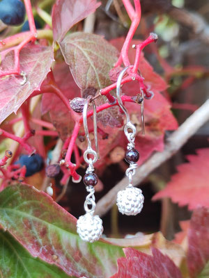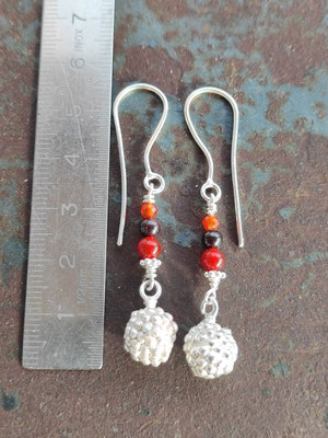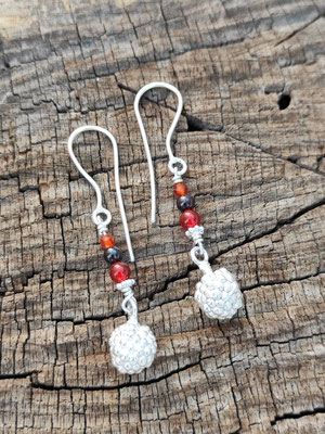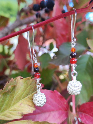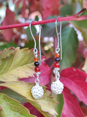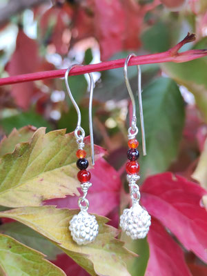 Kleine Beeren schmücken diese schönen Ohrringe, kombiniert mit Granat und Karneol