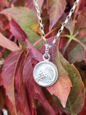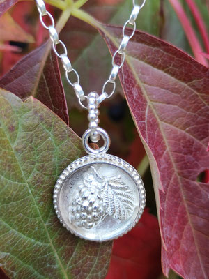 zauberhafter Beerenblatt Anhänger, der perfekt an einer Silberkette getragen werden kann.